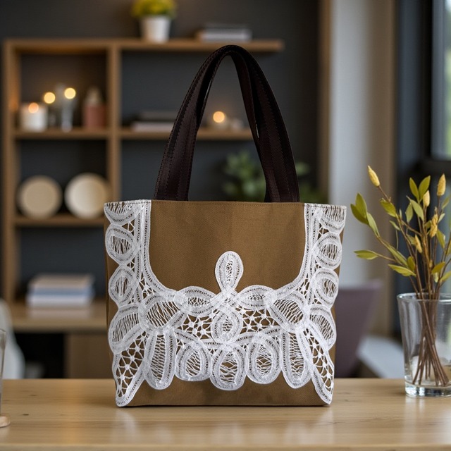 職人の針仕事が紡ぐ バテンレーストートバッグ 上品な肩掛けスタイル