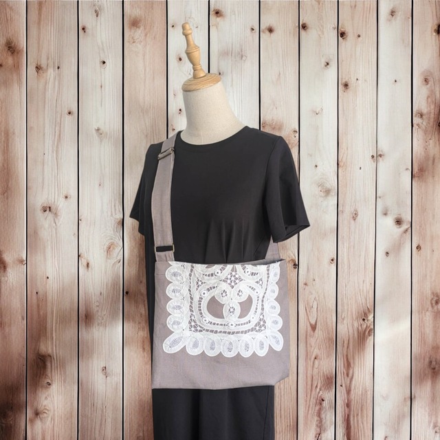 ~2WAY使える!持ち手調節可能なバテンレースバッグ!~ こちらの「2WAY使える!ショルダーバッグにもトートバッグ 持ち手調節可能なバテンレースバッグ」は、機能性と美しさを兼ね備えた優れたバッグです。ショルダーバッグにもトートバッグとしても使える2WAY仕様で、シーンに応じて使い分けが可能です。持ち手の長さを調節できるので、あなたのライフスタイルにぴったりフィットします。 デザインだけでなく、実用性にも優れています。内側には便利なポケット付きで、小物の整理がしやすく、日常のさまざまなシーンで活躍すること間違いなしです。通勤やお出かけ、ショッピングなど、用途に応じて使いやすさを追求しています。 【サイズ】横幅36cm 高さ28cm 持ち手 最小56cm 最大100cm 【素材】生地 綿100%、バテンレース 綿100% 【色】グレー 発送時には丁寧な梱包でお届けし、畳ジワがつかないよう配慮いたしますが、梱包資材の都合上、多少のシワが生じることがございます。手作りのため、一つ一つに個体差があることを何卒ご理解ください。商品の発送には1週間~10日ほどお時間をいただく場合がございます。 このバテンレースバッグを持って、あなたの日常をよりスタイリッシュに彩ってみてください!