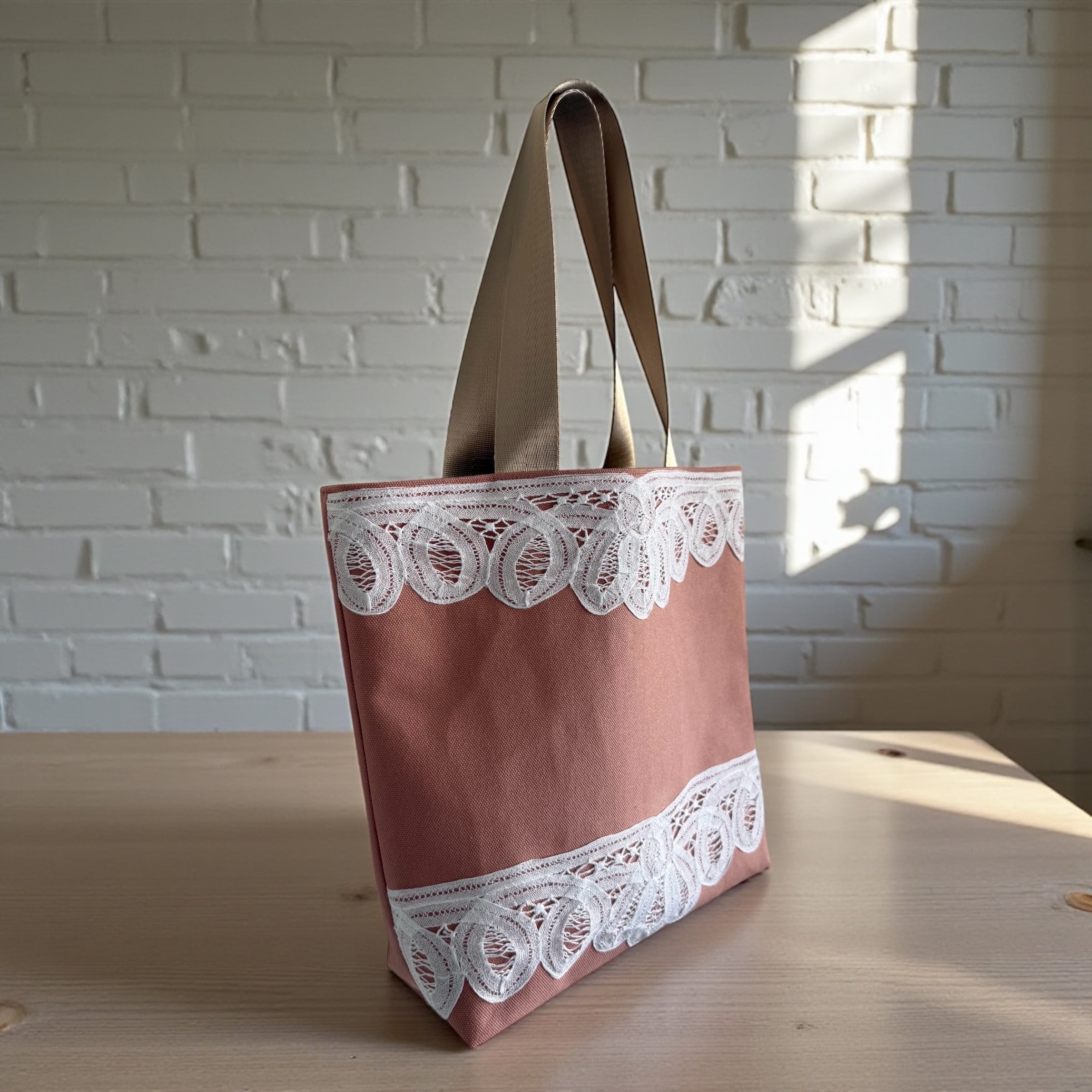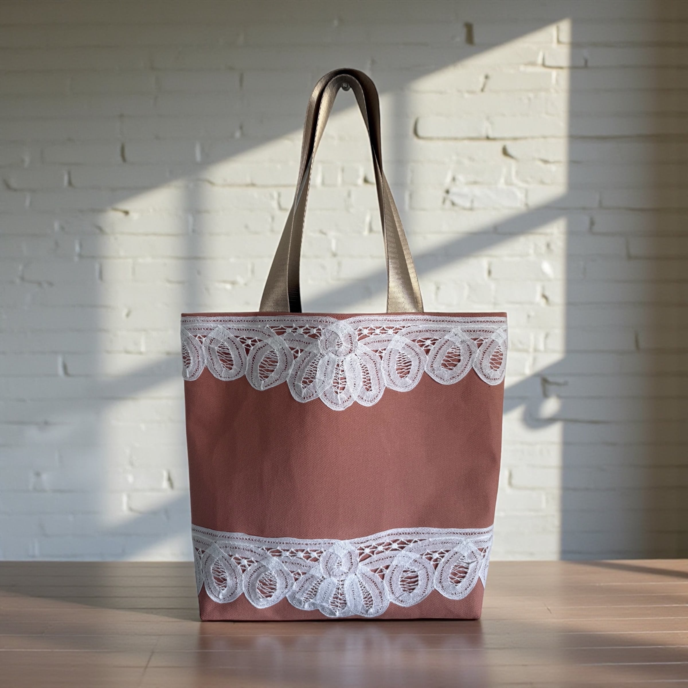 この「荷物がたっぷり入る サーモンピンク華やかバテンレーストートバッグ」は、日常に華やかさを添える最適な存在感を持つアイテムです!