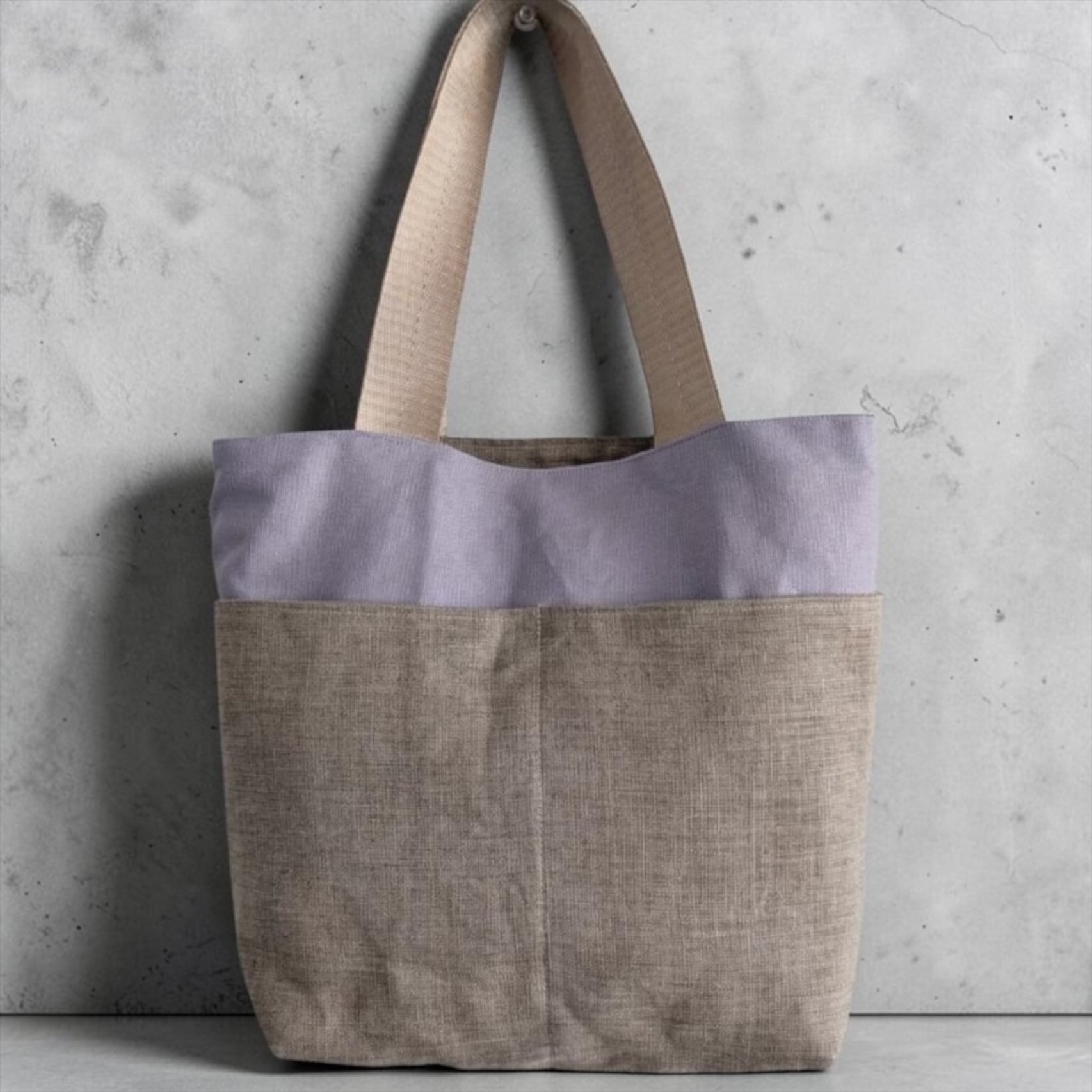 こちらの「バイカラートートバッグ」は、グレーベージュ生地にに白いバテンレースを施した華やかでありながら落ち着きのあるスタイルが魅力です。ベージュとくすみパープルのバイカラーが特徴で、持ち手もシャンパンゴールドと落ち着きの中に華やかさを演出してくれるトートバッグです。