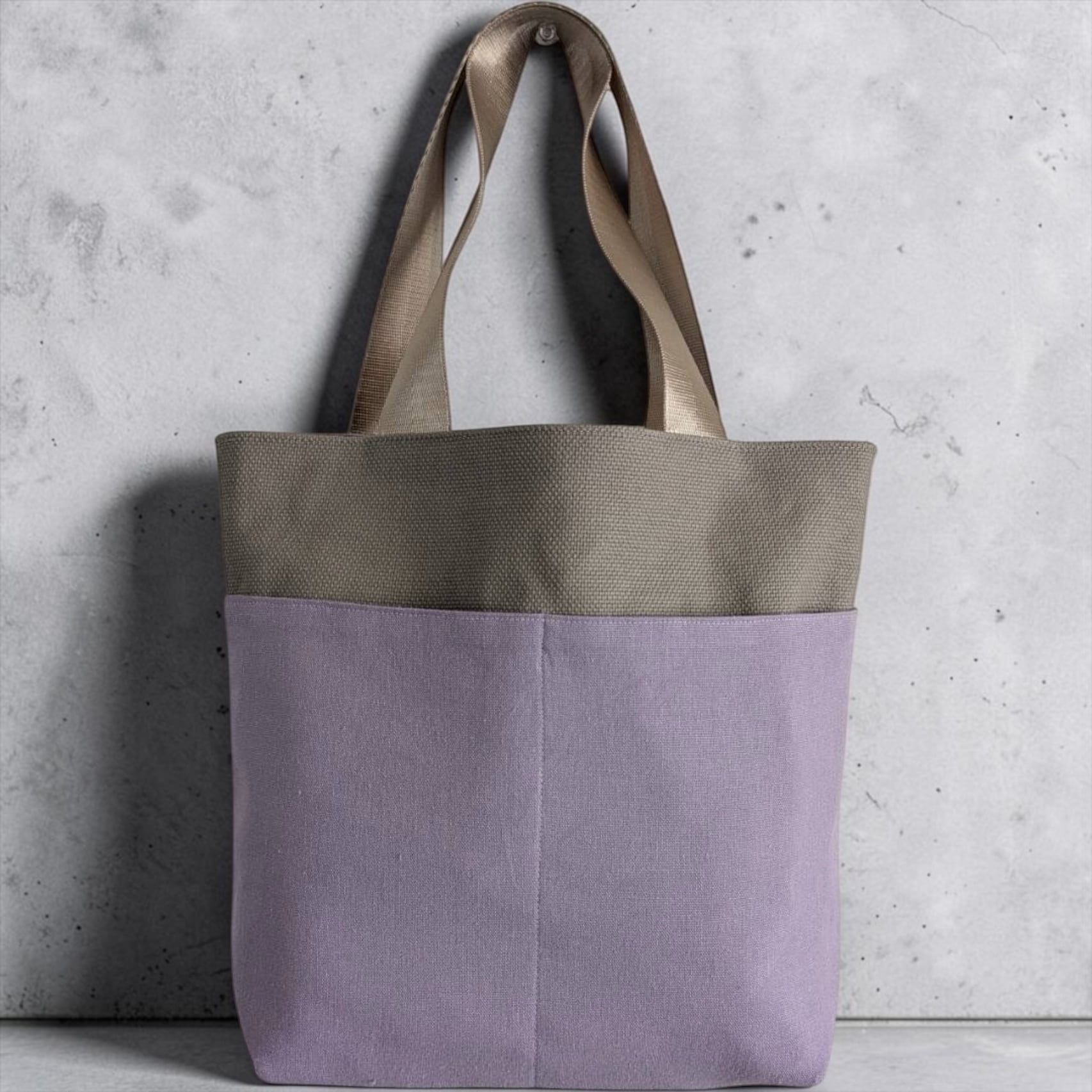 こちらの「バイカラートートバッグ」は、パープル生地にに白いバテンレースを施した華やかでありながら落ち着きのあるスタイルが魅力です。くすみパープルとグレーベージュのバイカラーが特徴で、持ち手もシャンパンゴールドと落ち着きの中に華やかさを演出してくれるトートバッグです。