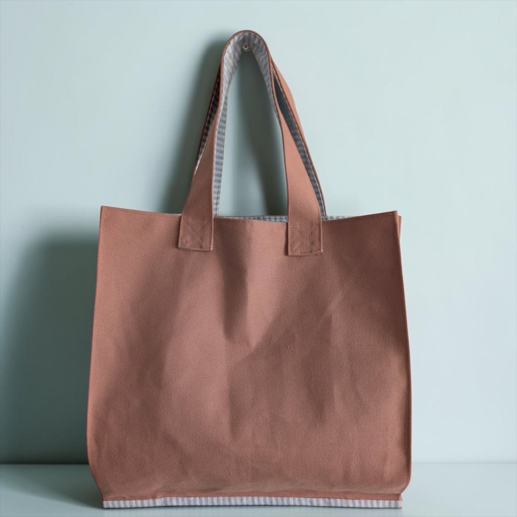 トートバッグの底にはストライプ生地のパイピングを施し、さりげないアクセントに。